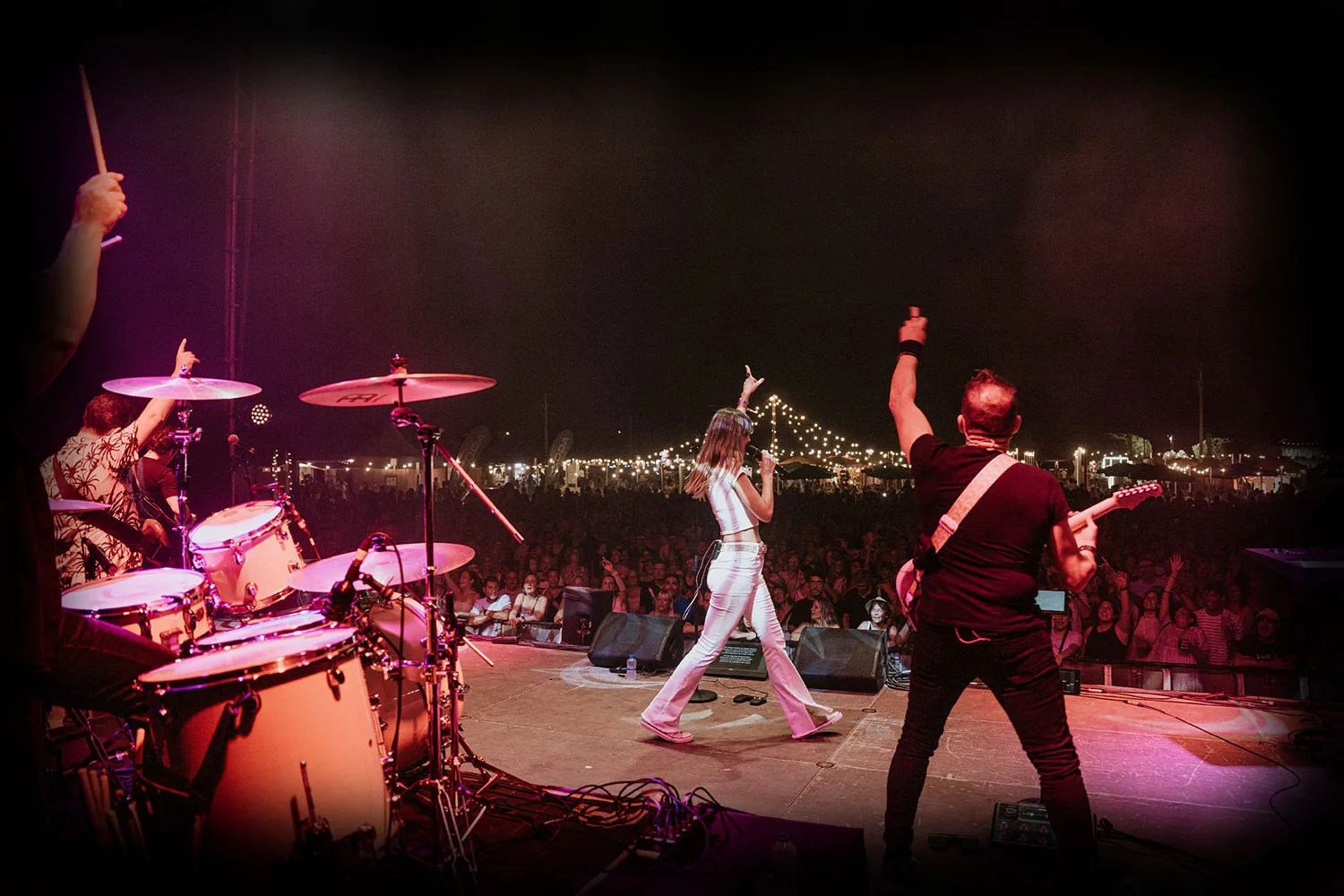 Momentos que capturan lo que se vive sobre el escenario: luces, público, música y sonrisas.